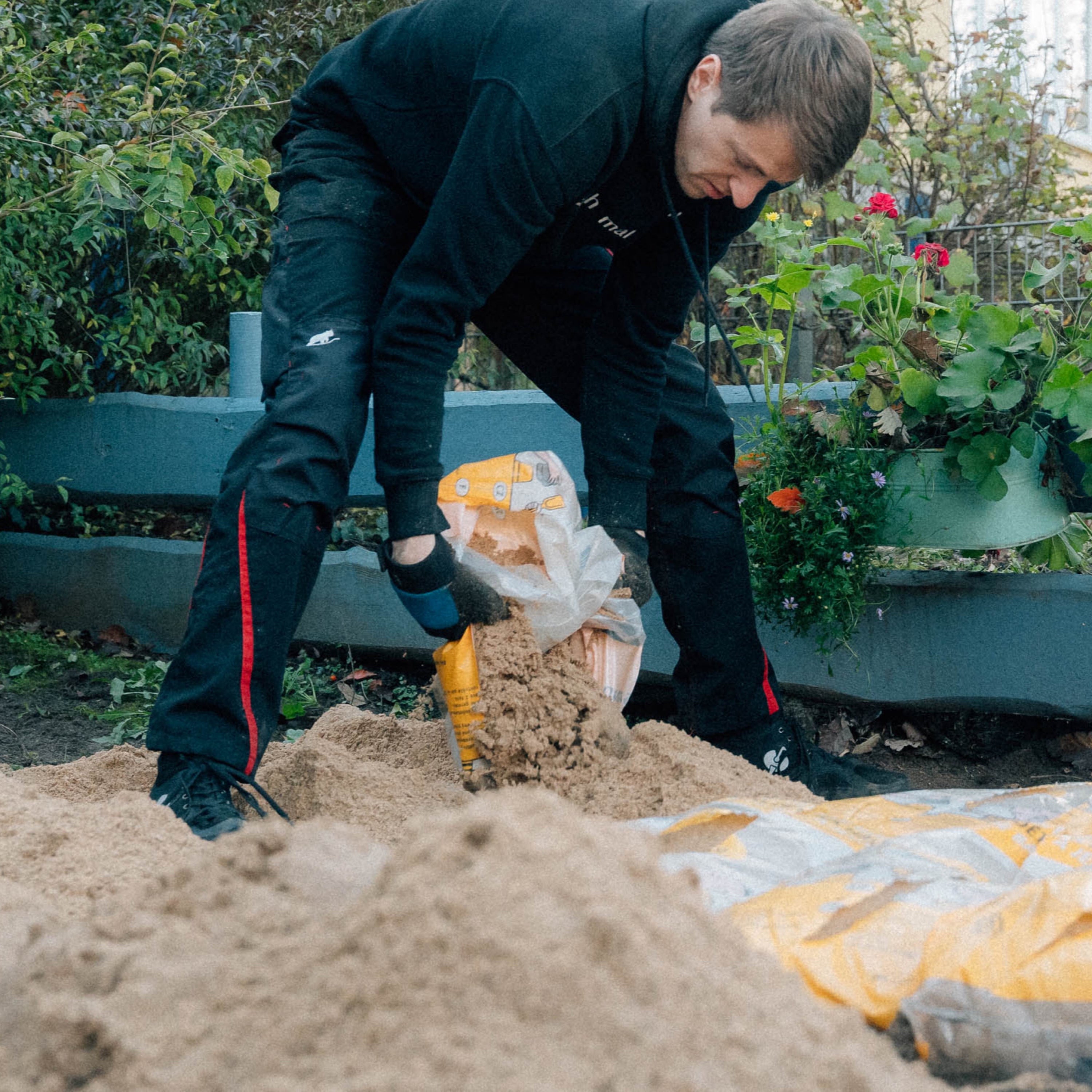 Über 1 Tonne Kinderspielsand und 1.500 Liter Rindenmulch wurden besorgt.
